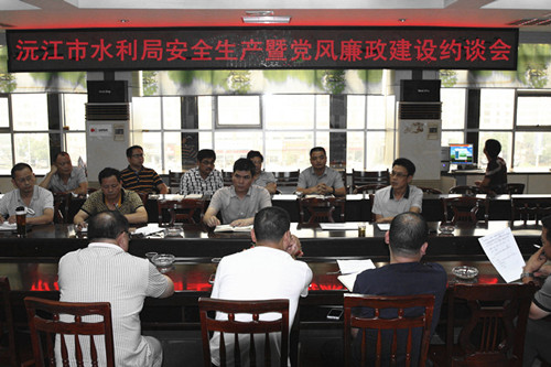 近日,沅江市水利局召開安全生產(chǎn)和黨風(fēng)廉政建設(shè)集體約談會,對局內(nèi)設(shè)機構(gòu)和所屬基層單位主要負(fù)責(zé)人進行了安全生產(chǎn)和黨風(fēng)廉政建設(shè)集體約談,重申安全生產(chǎn)和黨風(fēng)廉政建設(shè)主體責(zé)任和監(jiān)督責(zé)任,明確落實安全生產(chǎn)和黨風(fēng)廉政建設(shè)規(guī)定精神和嚴(yán)明組織紀(jì)律的具體要求,傳導(dǎo)壓力,落實責(zé)任。