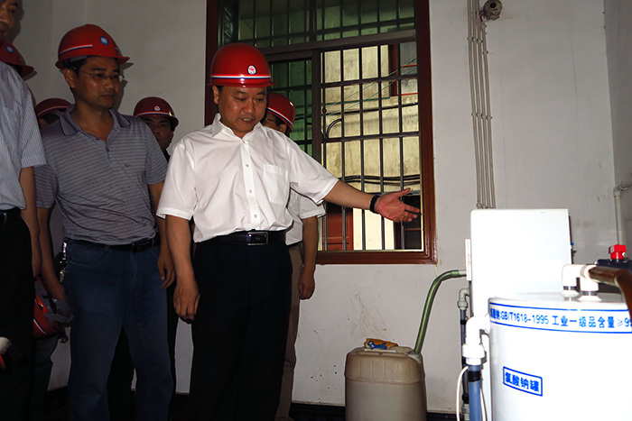 李國英副部長在仔細(xì)察看水處理工藝流程