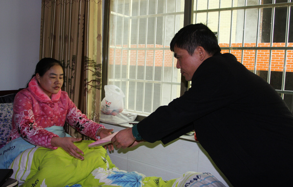 2014年11月26日上午,市水利局黨組書記、局長(zhǎng)易志斌帶領(lǐng)有關(guān)人員將愛心捐款11.9萬元親手交給了李躍紅,希望能給她困境中的一家給予一點(diǎn)點(diǎn)經(jīng)濟(jì)上的幫助,送去一點(diǎn)點(diǎn)安慰,并希望她早日康復(fù),撫養(yǎng)孩子健康成長(zhǎng)。(金漢欽)