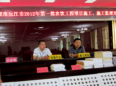沅江市2012年度農(nóng)飲安全工程施工與監(jiān)理招投標開標.